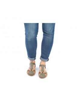 Ces sandales en cuir séduisent par leur style authentique et leur combinaison harmonieuse de tons naturels. Le mélange subtil de kaki, beige et camel apporte une touche chaleureuse et facile à associer à toutes vos tenues d’été. La bride en T structure joliment le pied tandis que la fermeture scratch assure un ajustement précis et un maintien optimal. Les découpes ajourées laissent respirer le pied pour un confort idéal lors des journées ensoleillées. Les surpiqûres apparentes et la finition artisanale soulignent le savoir-faire et donnent du caractère au modèle. La semelle souple et légère offre un amorti agréable pour marcher toute la journée sans compromis sur le bien-être. Parfaites avec une robe fluide, un pantalon en lin ou un jean retroussé, ces sandales deviendront vite vos indispensables de la saison.