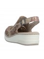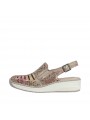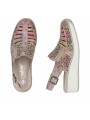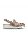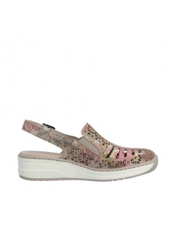 Cette sandale fermée séduit par son cuir travaillé aux motifs ajourés et ses nuances subtilement irisés mêlant beige, rose et reflets dorés. Son design raffiné apporte une touche féminine et originale tout en laissant le pied respirer grâce aux découpes délicates. La bride arrière réglable avec boucle assure un maintien parfait et un ajustement personnalisé. Les empiècements élastiqués sur les côtés facilitent l’enfilage et offrent un confort supplémentaire au quotidien. Montée sur une semelle compensée légère et ergonomique, elle garantit un excellent amorti et une stabilité agréable à chaque pas. Idéale avec une robe estivale, un pantalon clair ou un jean, elle apporte une touche lumineuse et sophistiquée à vos tenues. Un modèle confortable, élégant et plein de caractère, parfait pour celles qui recherchent style et bien-être au quotidien.
