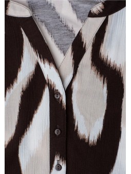Affirmez votre style avec cette blouse au motif graphique marrone et beige, parfaite pour une allure chic et tendance. Sa coupe fluide et légère assure un confort optimal, tandis que son col ouvert et ses manches 3/4 apportent une touche féminine et décontractée. Facile à associer avec un jean ou un pantalon uni, elle devient la pièce forte de votre tenue. Une blouse idéale pour un look moderne, audacieux et plein de caractère.