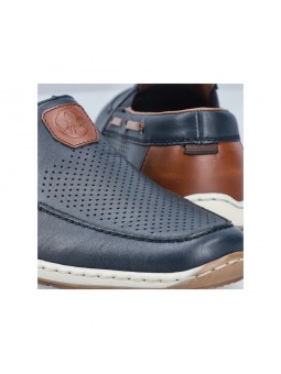 Ce mocassin bleu marine séduit par son style moderne et raffiné. Conçu dans une matière souple et légèrement perforée, il assure une excellente respirabilité, idéale pour la saison estivale. Les détails camel contrastants apportent une touche d’élégance et renforcent son allure tendance. Facile à enfiler grâce à ses empiècements élastiqués, il offre un chaussant pratique et confortable. Sa semelle légère et flexible garantit un amorti agréable et un confort optimal tout au long de la journée. Polyvalent, ce mocassin s’accorde parfaitement avec un jean, un chino ou un pantalon plus habillé. Il apporte une touche soignée et décontractée à vos tenues, que ce soit pour le travail ou les moments de détente. Un indispensable du dressing masculin, pensé pour ceux qui recherchent style, confort et praticité au quotidien.
