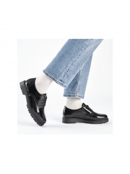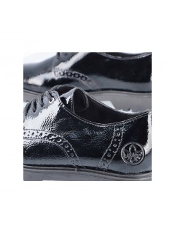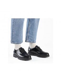 Ces derbies en cuir verni noir allient à la perfection style intemporel et modernité. Leur finition brillante attire le regard, tandis que les détails perforés apportent une touche de sophistication discrète. Conçues pour le confort au quotidien, elles reposent sur une semelle crantée robuste offrant une excellente adhérence. Idéales pour sublimer un look professionnel ou habiller une tenue plus décontractée avec élégance.
