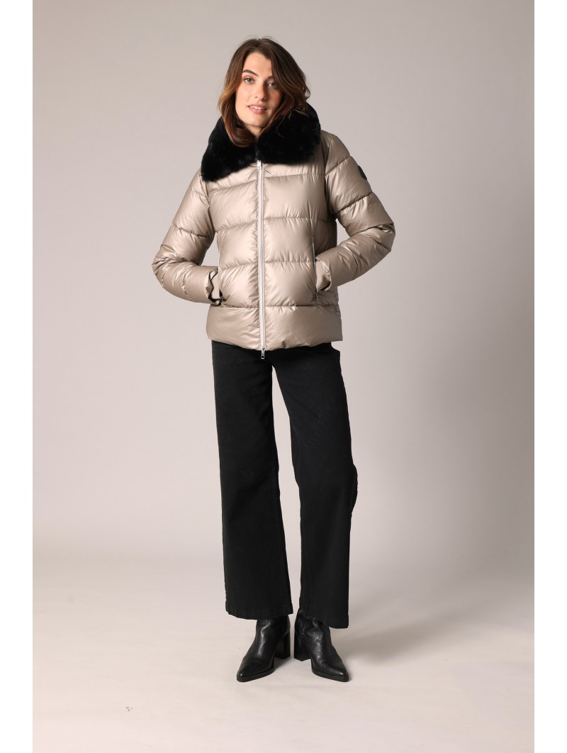 Affrontez l’hiver avec style grâce à cette doudoune Deeluxe au fini satiné, ultra féminine et confortable. Son col en fausse fourrure amovible apporte une touche de douceur et d’élégance tout en vous protégeant du froid.