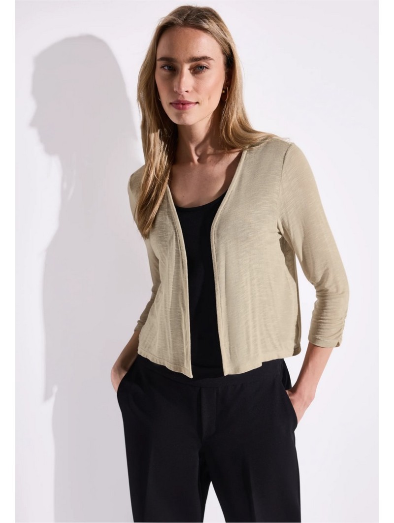 Ce petit gilet léger est une pièce essentielle pour vos superpositions du quotidien. Avec sa coupe courte et fluide, ses manches 3/4 froncées et son tissu doux au toucher, il se glisse facilement sur une robe, un top ou un débardeur. Que vous choisissiez le noir intemporel ou le beige lumineux, il ajoute une touche de confort chic à votre silhouette.
