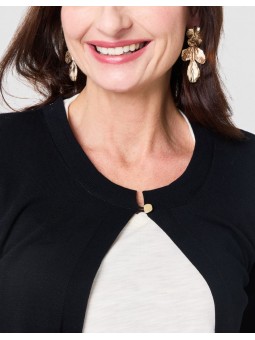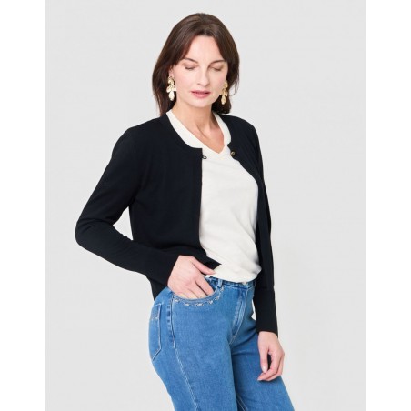 Indispensable du dressing féminin, ce gilet Christine Laure séduit par sa simplicité raffinée et sa grande polyvalence. Son coloris noir intemporel en fait une pièce facile à associer, idéale pour compléter toutes vos tenues avec élégance.