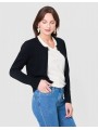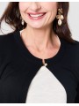 Sa coupe courte et structurée met en valeur la silhouette, tandis que son col rond apporte une touche de douceur et de modernité. La fermeture discrète par un bouton bijou souligne subtilement le style chic de la pièce, sans en faire trop.