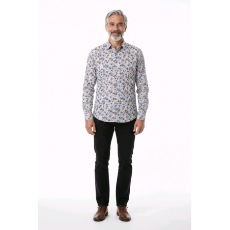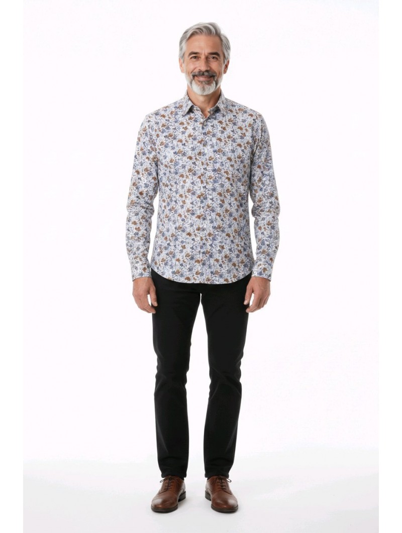 Cette chemise à manches longues séduit par son imprimé floral raffiné aux tons de bleu, marron et blanc, alliant originalité et élégance. Confectionnée dans une matière légère et agréable, elle offre un confort parfait tout au long de la journée. Sa coupe moderne assure une silhouette soignée, tandis que les détails de finition témoignent du savoir-faire Cambridge Legend. Facile à assortir, elle se porte aussi bien avec un jean pour un style casual chic qu’avec un pantalon chino pour une allure plus habillée. Une pièce audacieuse et tendance, idéale pour les hommes qui aiment affirmer leur style avec subtilité.