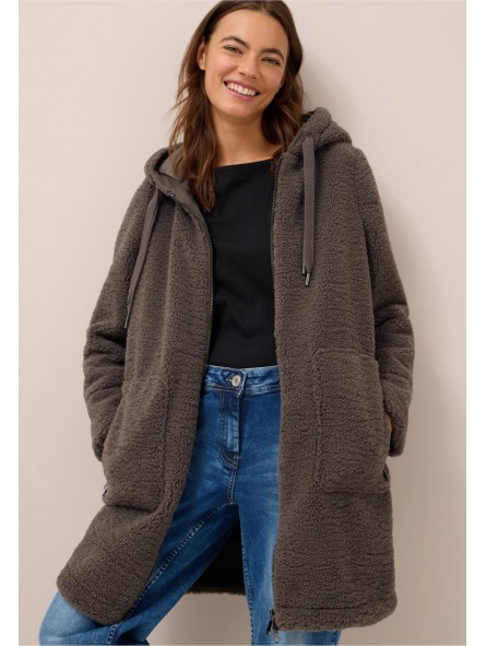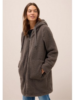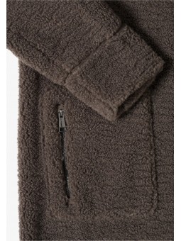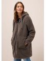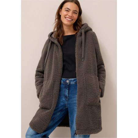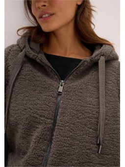Veste à capuche en maille teddy marron taupe ultra douce et chaude conçue pour offrir un maximum de confort tout en restant tendance fermeture zippée pratique avec cordons larges ton sur ton marqués de détails discrets poches plaquées spacieuses avec zip invisible pour garder vos mains au chaud ou transporter vos essentiels coupe longue légèrement ample pour un style décontracté et une liberté de mouvement optimale parfaite à associer avec un jean et des baskets pour un look casual ou sur un pantalon plus habillé pour un contraste chic et cosy idéale pour les journées froides ou les balades en extérieur