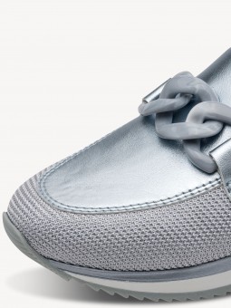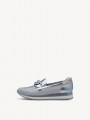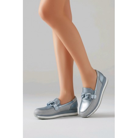 Mocassins femme au look moderne et élégant dans un joli coloris bleu doux. Association de matières avec effet texturé qui apporte du relief et du style. Détail boucle décorative sur l’avant pour une touche chic et actuelle. Forme confortable qui épouse bien le pied. Semelle légère et souple offrant un bon amorti à la marche. Modèle facile à porter au quotidien avec un jean, un pantalon 7/8e ou une tenue plus habillée. Idéal pour allier féminité et confort toute la journée.