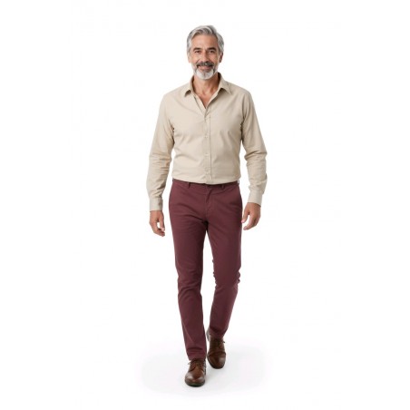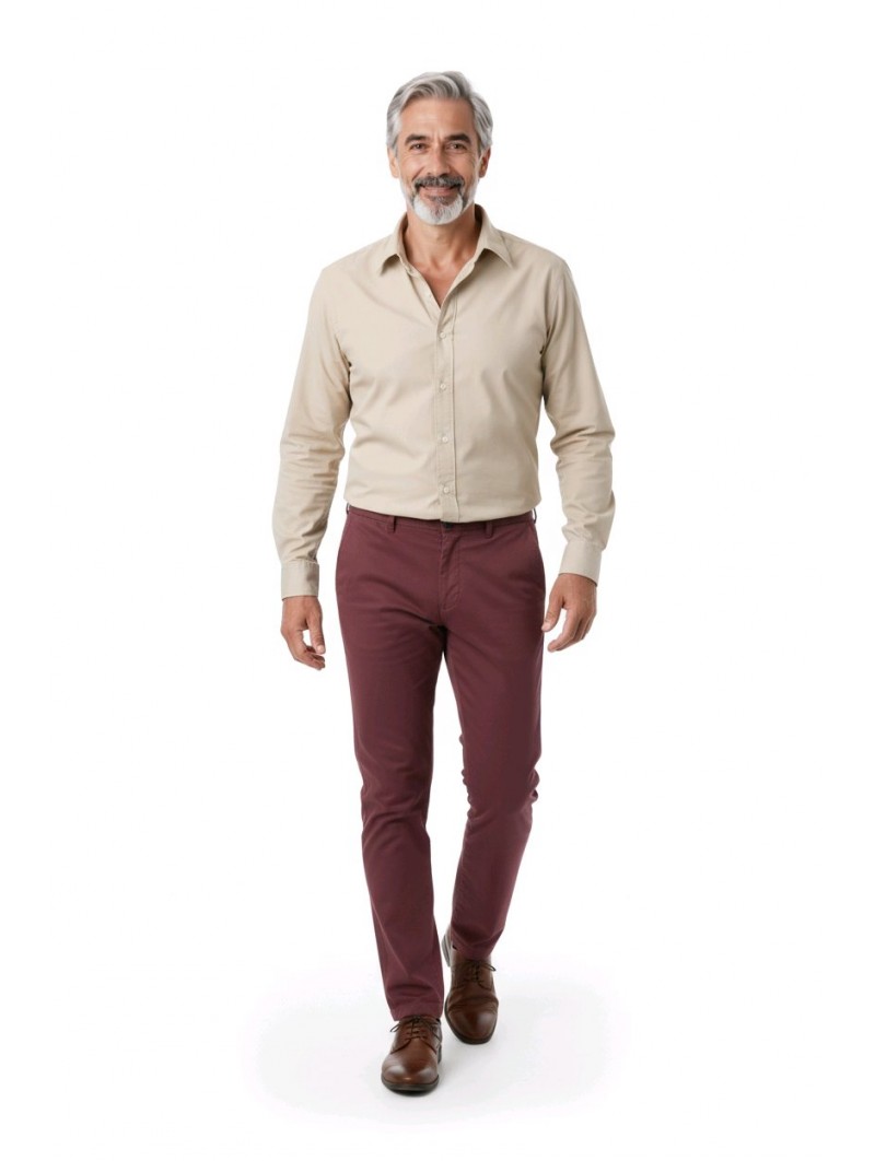 Illuminez votre style avec notre Pantalon Chino Cambridge en teinte cranberries : un classique réinventé pour ceux qui osent se démarquer.