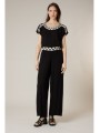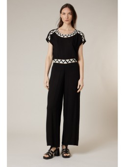 Ce pantalon noir à la coupe large séduit par son tombé fluide et sa ligne épurée qui élance naturellement la silhouette. Sa taille confortable est sublimée par un détail graphique contrasté qui rappelle parfaitement le haut assorti, pour un ensemble chic et structuré. Léger et agréable à porter, il accompagne chacun de vos mouvements avec souplesse. Facile à associer, il se porte aussi bien en total look élégant qu’avec une pièce plus décontractée pour un style casual raffiné. Une pièce intemporelle, confortable et résolument moderne à adopter sans hésiter.