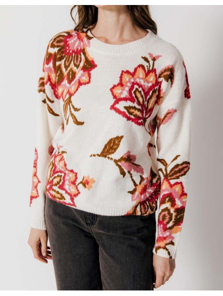 Faites éclore la féminité qui est en vous avec ce pull au charme floral et aux nuances éclatantes C'EST BEAU LA VIE !