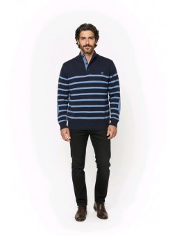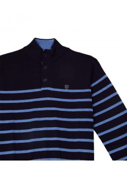 Pull homme d’été au style chic décontracté avec fines rayures bleues sur fond marine pour une allure moderne. Maille légère et respirante idéale pour la saison estivale. Matière douce agréable à porter même par temps doux. Col boutonné qui apporte une touche élégante et permet de moduler l’ouverture. Coupe confortable qui suit la silhouette sans tenir chaud. Finitions soignées et logo poitrine discret pour une note premium. Parfait avec un chino clair ou un jean pour un look estival soigné.