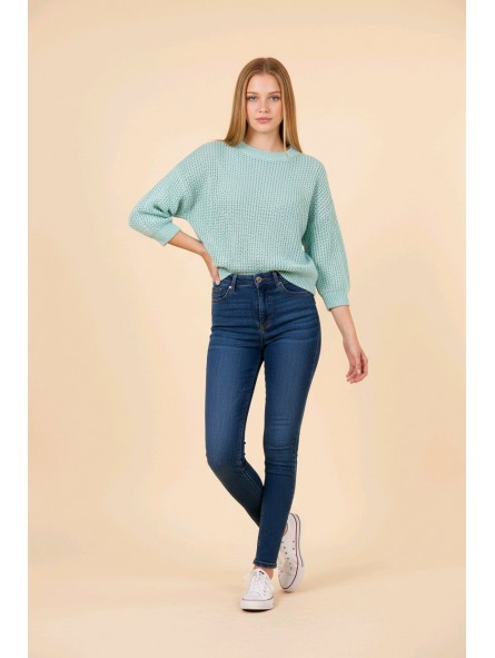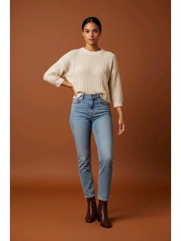 Ce pull en maille relief séduit par son jeu de texture délicat et sa coupe actuelle. Sa forme légèrement ample offre un tombé naturel et confortable, tandis que les manches 3/4 apportent une touche moderne et féminine. La maille structurée donne du caractère au modèle tout en conservant une belle légèreté au porter. Facile à associer, il se porte aussi bien avec un jean pour un look casual chic qu’avec un pantalon plus habillé pour une silhouette élégante et décontractée. Disponible en vert d’eau lumineux ou en beige naturel intemporel, deux teintes faciles à intégrer dans toutes les garde-robes de saison. Un indispensable confortable et raffiné, parfait pour une allure moderne sans effort.