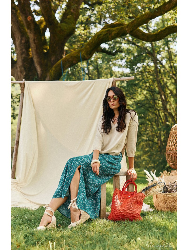 Facile à associer, il se porte aussi bien avec une jupe imprimée qu’avec un jean pour un look casual chic. Sa coupe légèrement ample crée une silhouette moderne et décontractée, idéale du matin au soir.