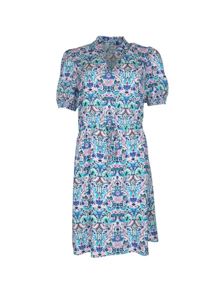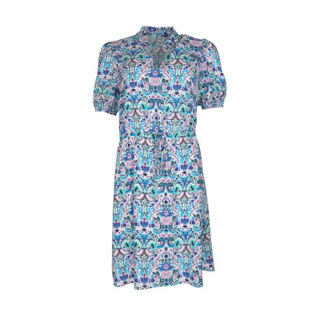 Craquez pour cette robe à imprimé mosaïque aux accents orientaux qui insufflent fraîcheur et originalité à votre garde-robe. Sa coupe mi-longue flatteuse, ses manches courtes bouffantes et son col en V subtilement travaillé en font une pièce aussi confortable qu'élégante. La taille ajustée par un lien à nouer souligne la silhouette avec finesse, pour un look féminin et raffiné en toute occasion.