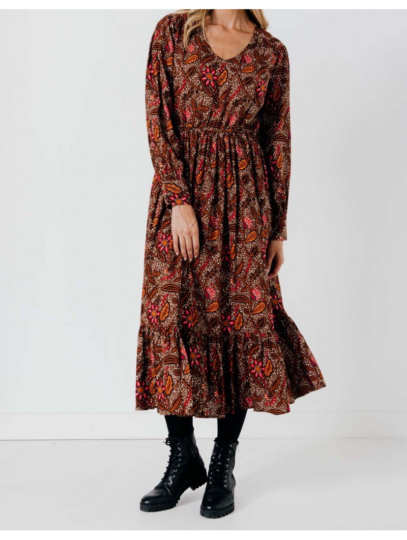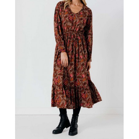 Laissez parler votre féminité avec cette robe longue C'EST BEAU LA VIE au charme bohème et aux teintes chaudes de saison !