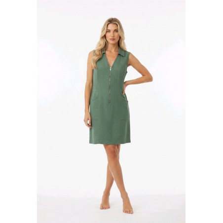 La robe Maloka capte le regard avec son style affirmé et sa coupe structurée. Son zip sur le devant apporte une note contemporaine et pratique, tandis que son col chemise et ses lignes épurées soulignent une silhouette élégante. Confortable et facile à porter, elle se prête aussi bien à une journée active qu’à une sortie estivale. Une pièce tendance qui mixe parfaitement décontraction et chic.