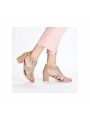 Cette sandale beige à talon séduit par son design raffiné et son jeu de découpes délicates. Son motif ajouré, sublimé par de subtils strass, apporte une touche lumineuse et sophistiquée, idéale pour vos occasions spéciales comme pour vos soirées d’été. Sa bride arrière assure un bon maintien du pied, tandis que sa structure montante enveloppe élégamment la cheville pour une silhouette élancée. Le talon carré, stable et confortable, offre une hauteur idéale pour allier style et aisance tout au long de la journée ou de la soirée. La semelle intérieure douce garantit un confort agréable, même après plusieurs heures. Facile à associer avec une robe fluide, une combinaison chic ou un pantalon habillé, cette sandale devient la pièce forte de votre look. Un modèle féminin, élégant et confortable, parfait pour briller avec subtilité et assurance.