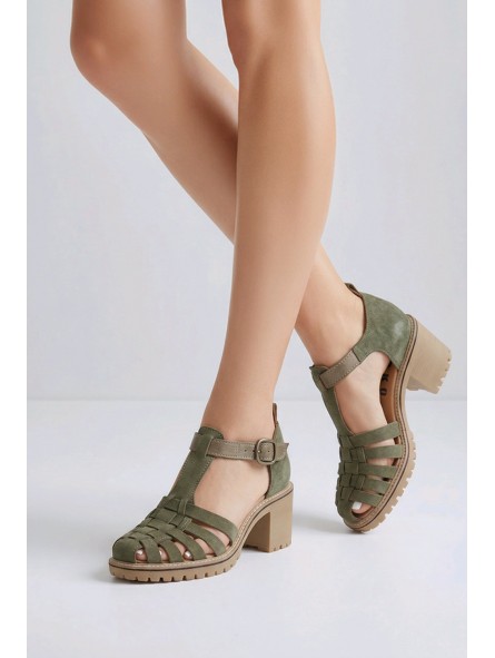 La sandale t-bar à talon bloc avec bride en T MKD tout cuir...