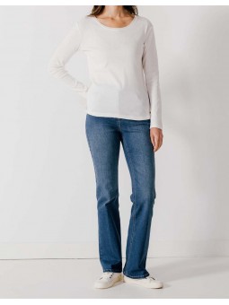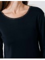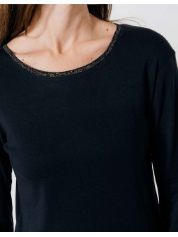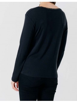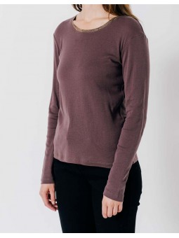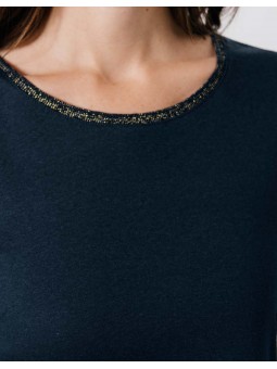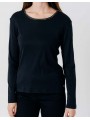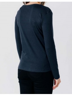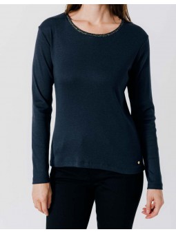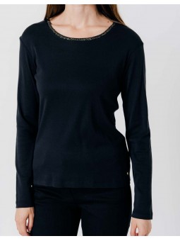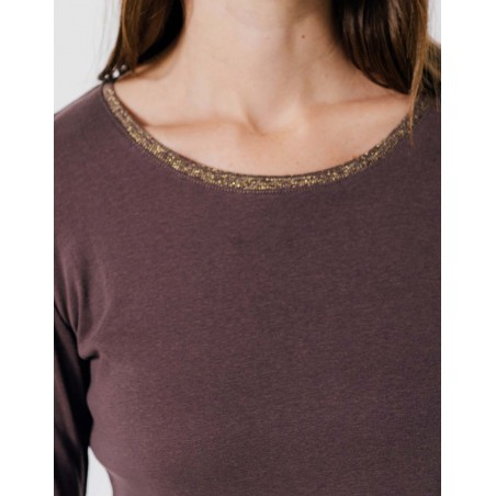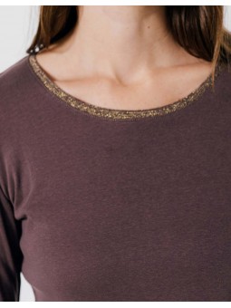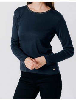 Élégant et intemporel, ce t-shirt manches longues se distingue par son encolure délicatement soulignée d’un liseré irisé. Confectionné dans une matière douce et fluide, il offre un confort absolu tout en mettant subtilement en valeur la silhouette. Facile à associer, il se glisse aussi bien sous une veste qu’avec un jean ou une jupe pour un look chic et décontracté. Décliné dans une palette de couleurs raffinées, taupe, bleu nuit, écru ou noir, il devient un indispensable du dressing féminin. Une pièce simple, lumineuse et féminine, parfaite pour briller au quotidien sans en faire trop.