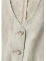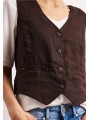 Craquez pour ce gilet sans manches en lin, parfait pour apporter une touche chic et tendance à vos tenues. Sa coupe ajustée et ses boutons sur le devant dessinent une silhouette féminine et élégante, tout en restant confortable grâce à sa matière naturelle et respirante. Porté sur un t-shirt ou une chemise, il apporte immédiatement du caractère à votre look. Décliné dans des teintes naturelles ou plus profondes, il s’adapte facilement à toutes vos envies pour un style à la fois raffiné et décontracté. Une pièce incontournable pour un dressing moderne et stylé.
